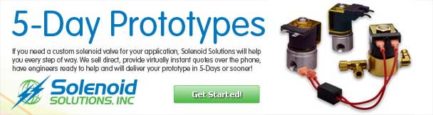 If you need a custom solenoid valve for your application, Solenoid Solutions will help you every step of way. We sell direct, provide virtually instant quotes over the phone, have engineers ready to help and will deliver your prototype... fast!