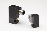 These subminiature valves feature a heat-resistant coil encapsulated with a specially designed glass reinforced Polyamide or PET (polyethylene terephthalatel), Class H copper wire, as well as stainless steel plunger guide, plunger and valve core. The valve assembly is designed for millions of cycles, is normally provided with Buna seals and a monostable manual override, and comes in a variety of electrical connections.